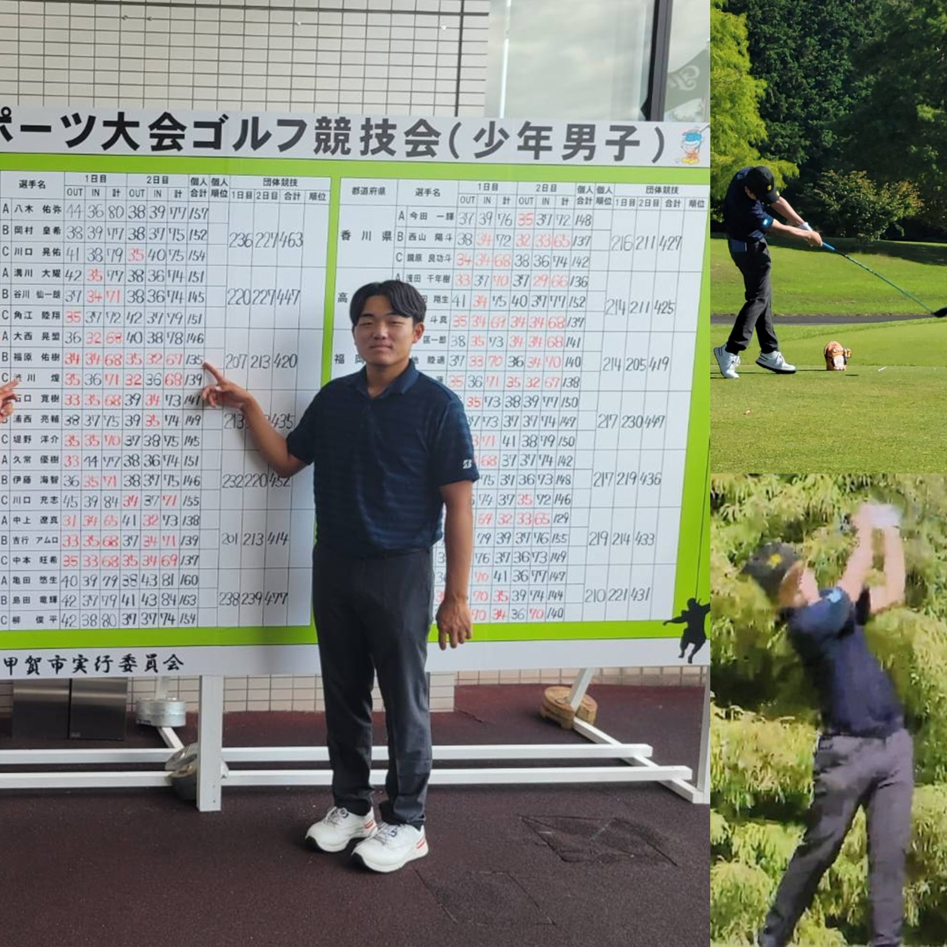 このたび、本校3年生の 福原佑樹君 が、滋賀県で開催された 国民スポーツ大会(国スポ)ゴルフ競技 において、見事な成績を収めました。個人戦では、スコア135(1日目68、2日目67) という安定したプレーで全国4位に入賞。さらに、兵庫県代表として選抜された 大西選手・渋川選手 とともに挑んだ団体戦でも、チーム合計420ストロークの好成績を収め、 全国4位 に輝きました。福原君の持ち前の集中力と粘り強いプレーでチームを牽引し、兵庫県代表を上位入賞へと導きました。