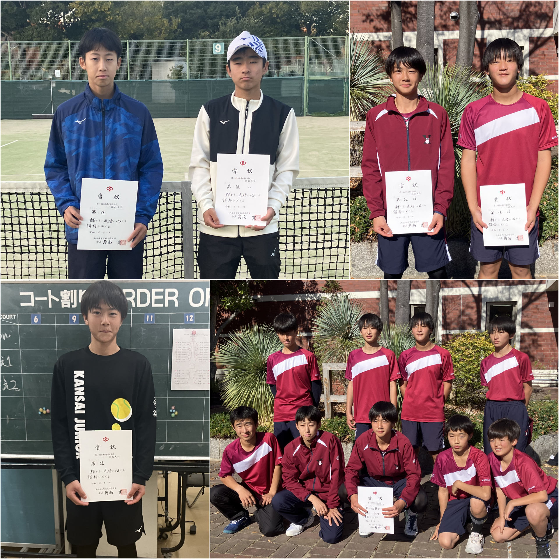 11月22日、23日に神戸総合運動公園にて行われた兵庫県新人大会にて、シングルス優勝(横山晴陽)、ダブルス優勝(横山晴陽・樋口遼)、ダブルス3位(中島典聖・吉川潤)、団体優勝の戦績を修めました。 この結果により、2月21日に滋賀県で行われる近畿新人大会(全国選抜団体予選)への出場が決まりました。 大会でサポートやご声援をいただいた皆様、ありがとうございました。
