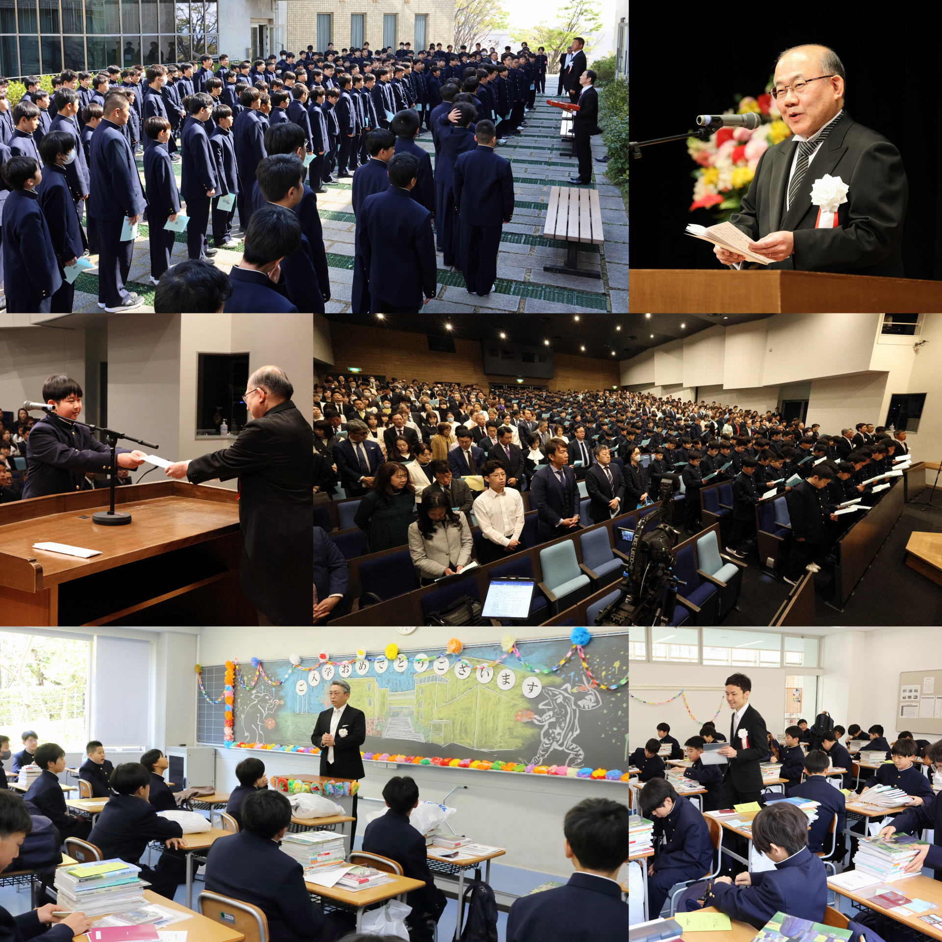 快晴の空のもと、桜の花が美しく映える4月8日(水)、甲南中学校・高等学校の入学式を挙行しました。