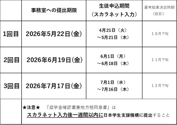 2027年度日本学生支援機構奨学金(予約採用)の募集 申請を希望される場合は甲南高等学校中学校事務室までご連絡ください。