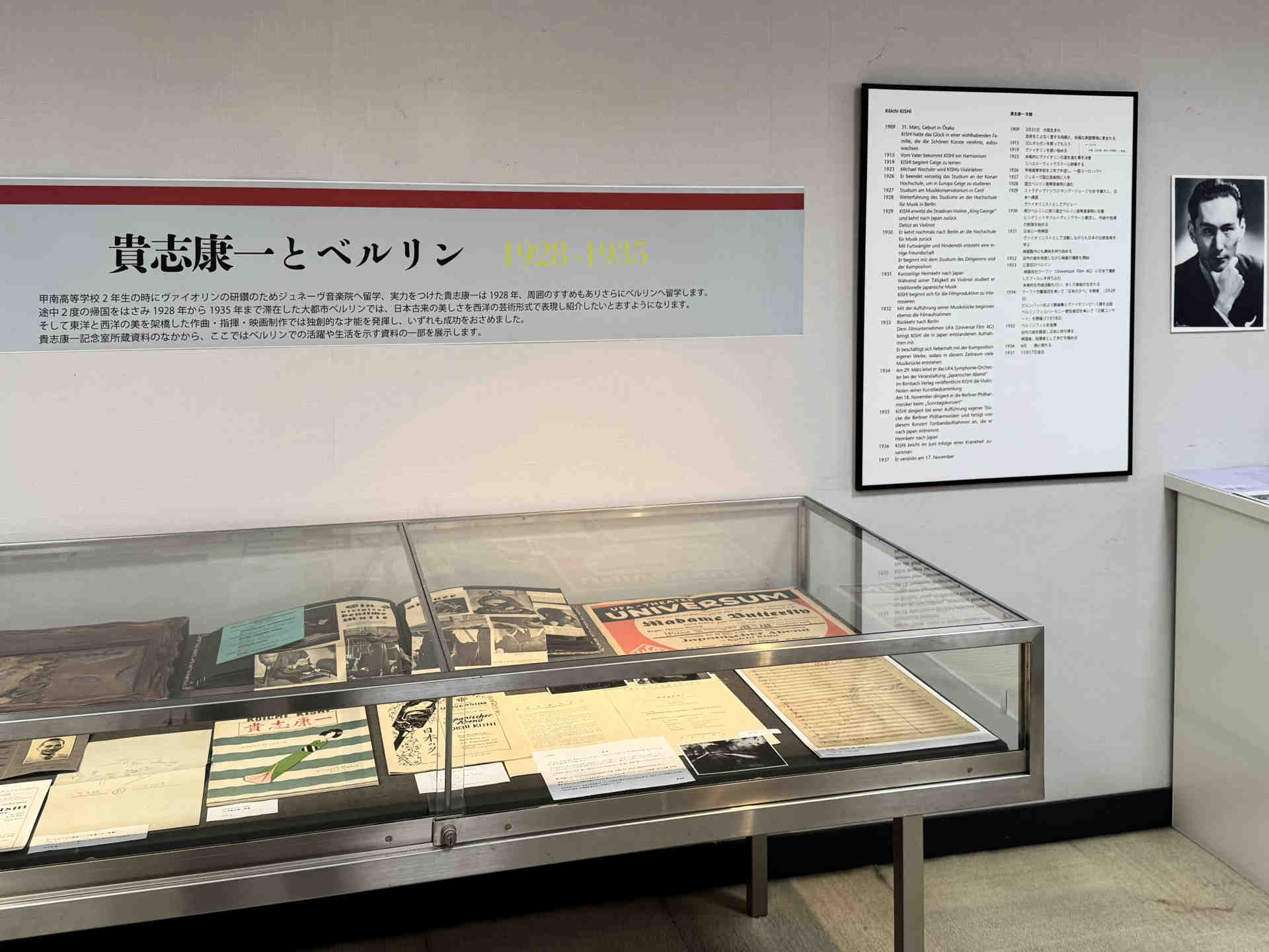 貴志康一(1909-1937)は、同じく甲南学園出身の音楽家であり、ヴァイオリニスト、指揮者、作曲家として類稀な才能を発揮し、世界的に活躍しました。本展示では、彼のベルリンでの活動や芦屋での生活にまつわる貴重な資料を貴志康一記念室より特別出品しています。